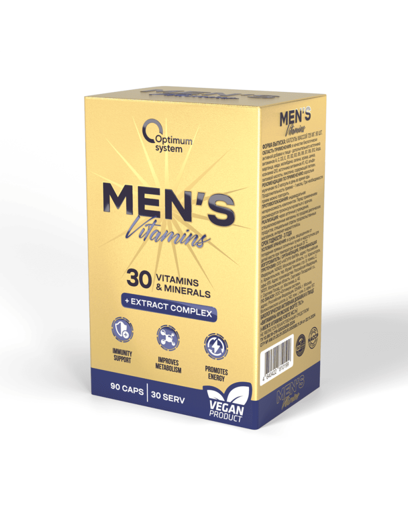 «Men's Vitamins» — это сбалансированный комплекс для поддержания мужского здоровья, энергии и жизненного тонуса. Добавка содержит 30 активных компонентов, включая витамины группы B, D3, цинк, селен, йод, растительные экстракты и фитостеролы.
